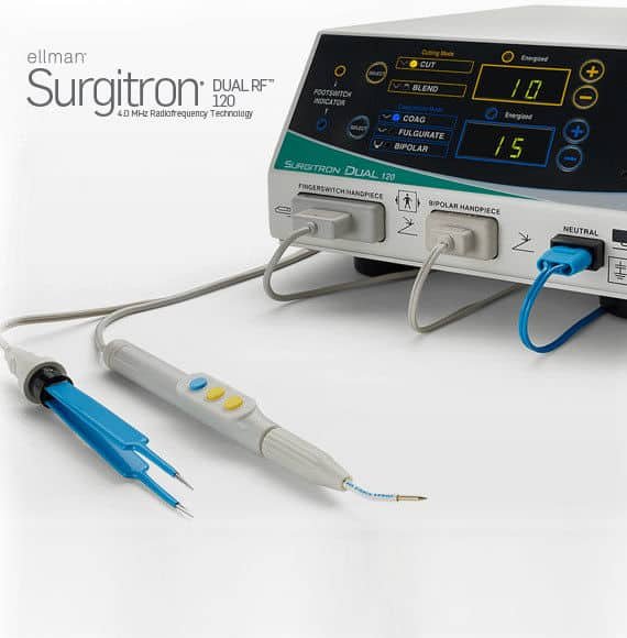 Radio waves are generated by a device called the Ellman Surgitron and applied to the skin using a specially-shaped electrode. The shape is selected depending on the procedure being performed.